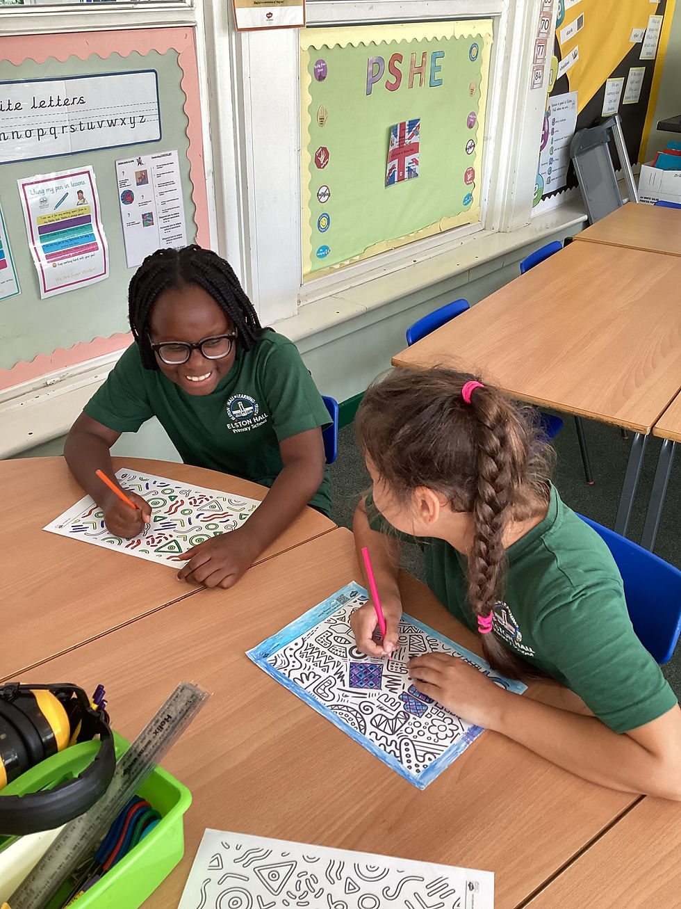 Children enjoying some mindful colouring in wellbeing club.