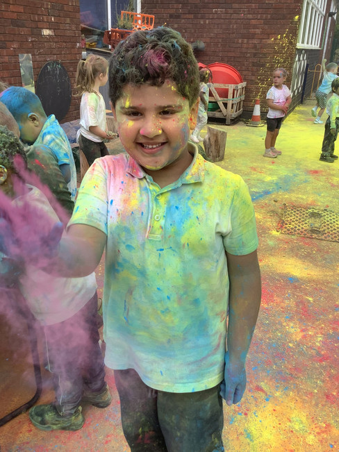 Later in the day, we hosted a Colour Festival inspired by the traditional Indian celebration of Holi. This joyful event honoured the diversity within our school community and helped our children explore and appreciate different cultures through colour, music, and shared experiences. There were plenty of laughs as both children and staff were dusted in coloured powder, dancing and playing together in a true celebration of unity.