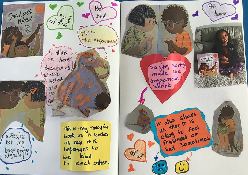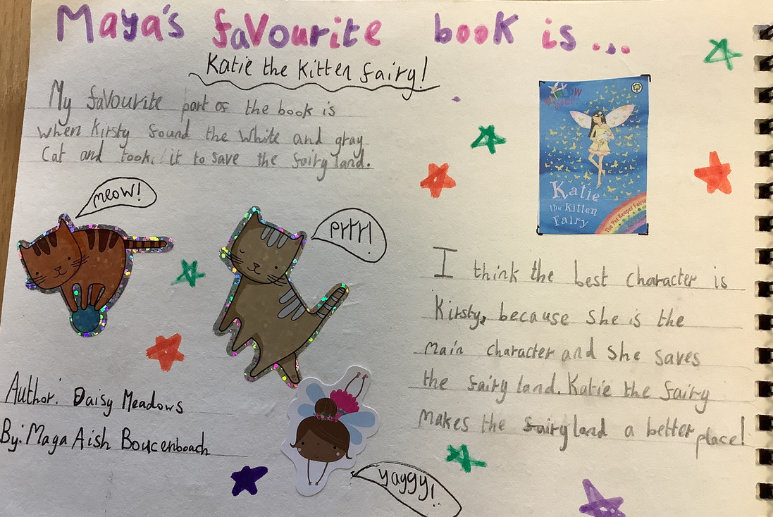 We are encouraging children to revisit their favorite book – the one they just can't get enough of! After rereading, the children write about their thoughts and what they love most about it in our special class scrapbook. This is a fantastic way for them to share their passion for reading. They then have the opportunity to share their ideas with the class! Use the arrow to scroll through some of our amazing scrapbook entries!