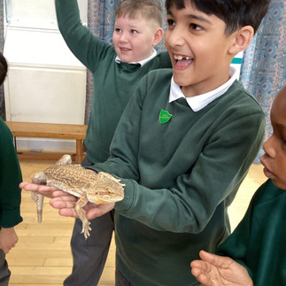 We had a visit from the animal to start our 'Going Wild' topic. Children enjoyed meeting the animals and learning some facts about them. They had the chance to meet a Madagascan Hissing Cockroach, Custard - a crested gecko, a bearded dragon, a cornsnake, an owl and a skunk.