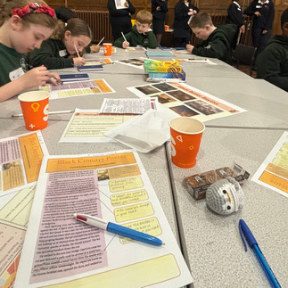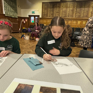 After lunch, we had a creative writing session. We analysed an author's language choices in a poem and then used colour synonyms and descriptive language to create our own short poem to fit our artwork. We enjoyed discussing using metaphors to build up negative and positive effects, and how repetition can build an image in the reader's head and the impact of our words.